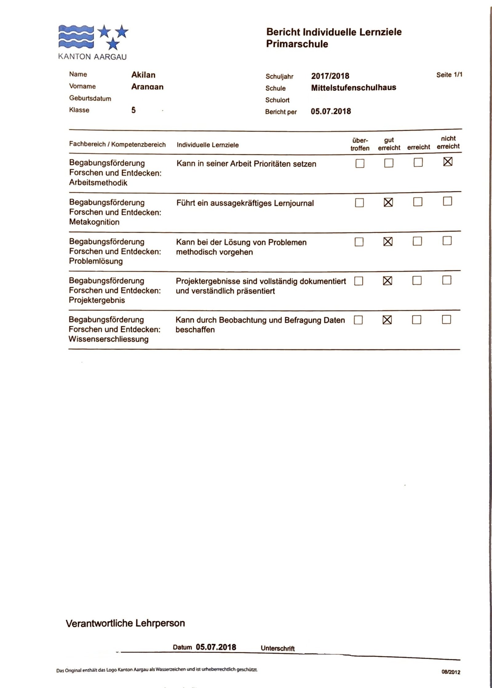 The individual learning goal report from 5th grade (2017/2018) serves as an example of how I approached school learning during the gifted program. This document illustrates the foundation of my current approach to challenges and learning opportunities.